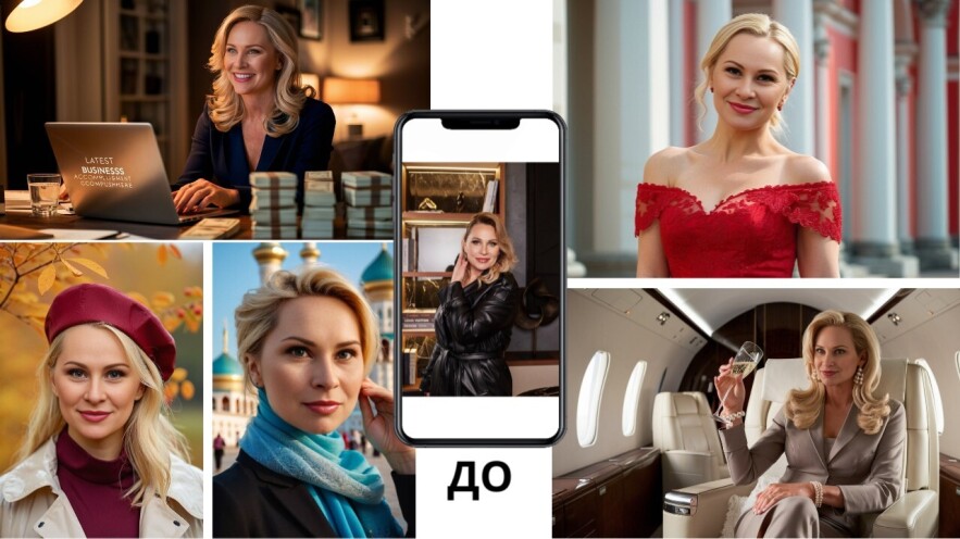 Все, что вам нужно сделать это загрузить фото заказчика на сервис и получить фотосессию этого человека в разной одежде, в разной обстановке, с разными эмоциями.